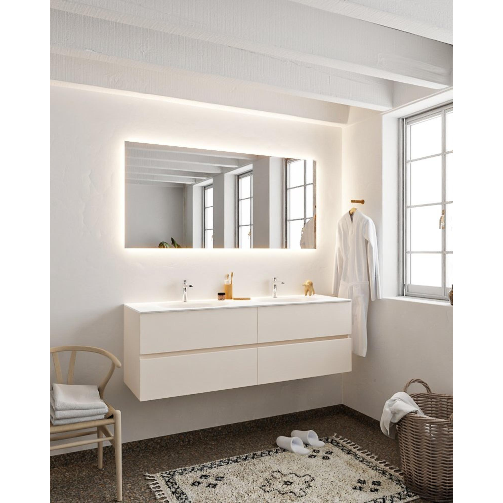ENSEMBLE DE MEUBLE MONDIAZ VICA - 150 cm - 4 tiroirs - lavabo Moon double - 2 trous de robinet - solid surface lin