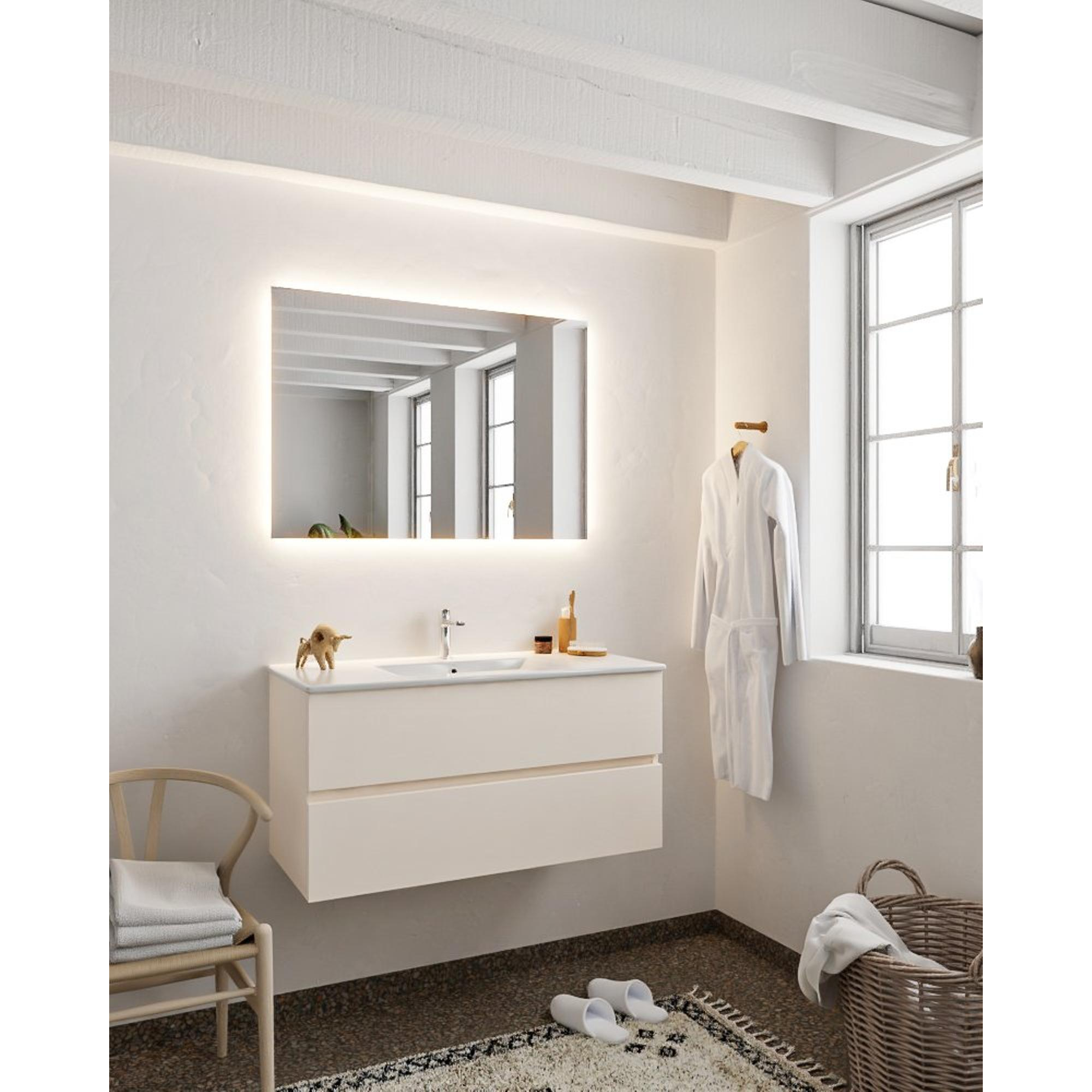 MONDIAZ VICA Ensemble de meuble salle de bain - 100cm - 2 tiroirs - lavabo Denia central - 1 trou de robinet - solid surface lin