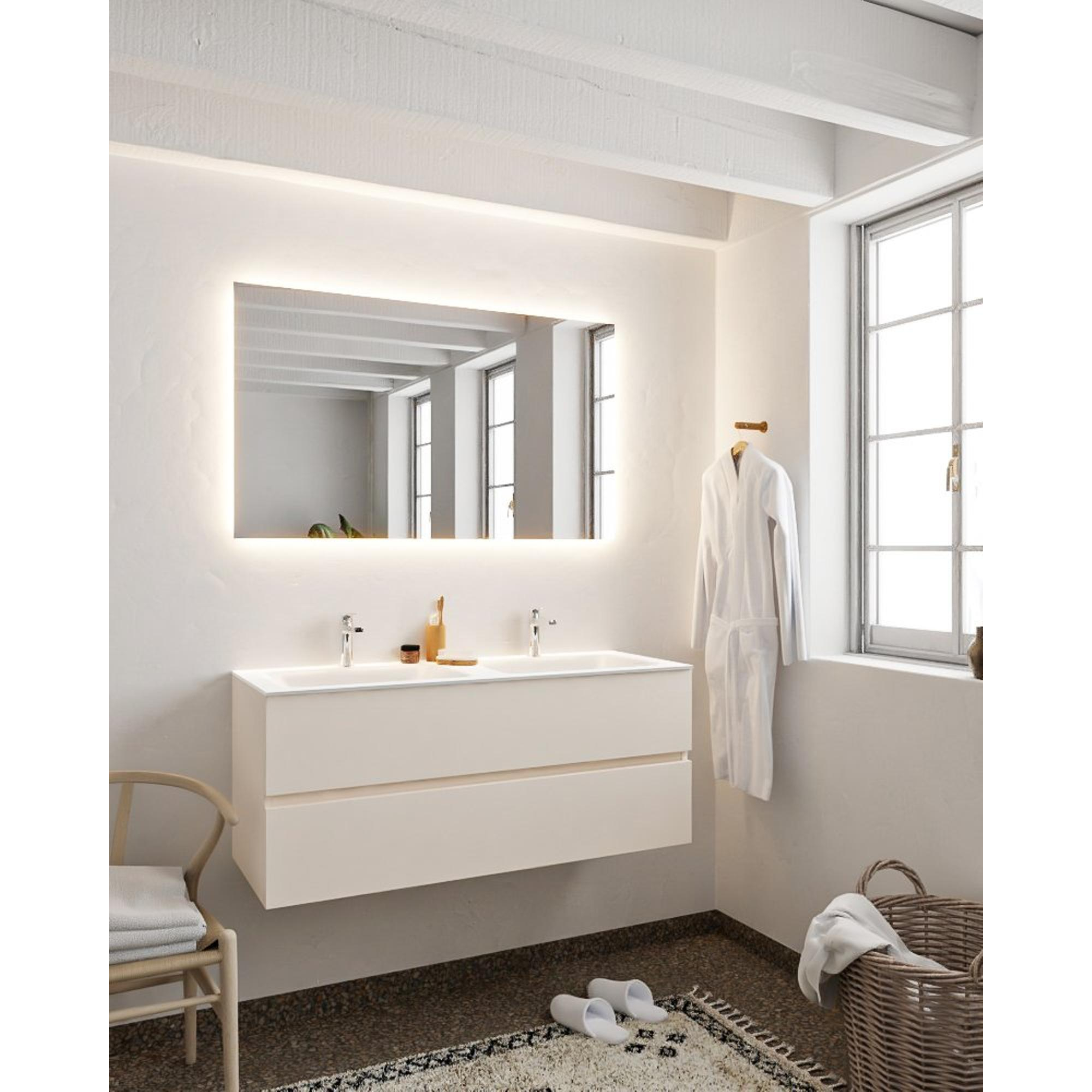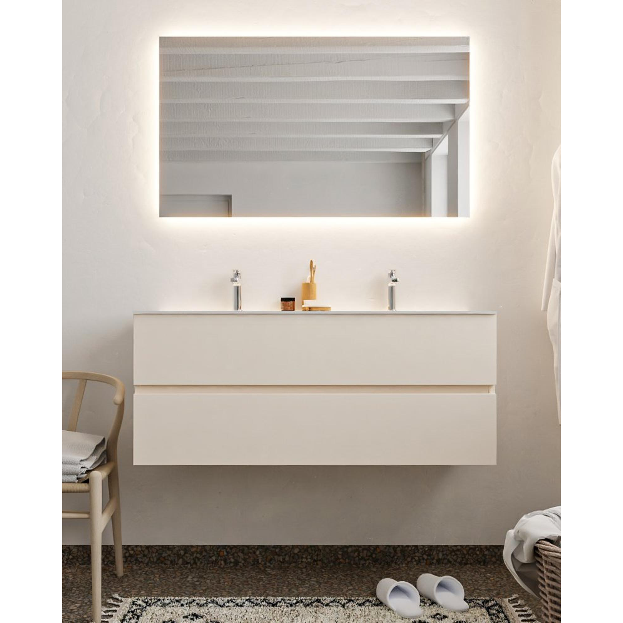 MONDIAZ VICA Ensemble de meuble de salle de bain - 120cm - 2 tiroirs - lavabo Cloud double - 2 trous de robinet - solid surface lin