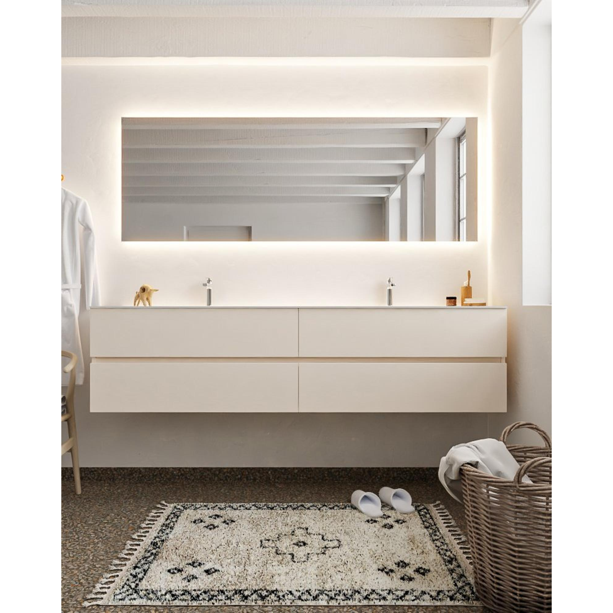 MONDIAZ VICA Ensemble meuble de salle de bains - 200cm - 4 tiroirs - vasque Cloud double - 2 trous de robinet - solid surface linen