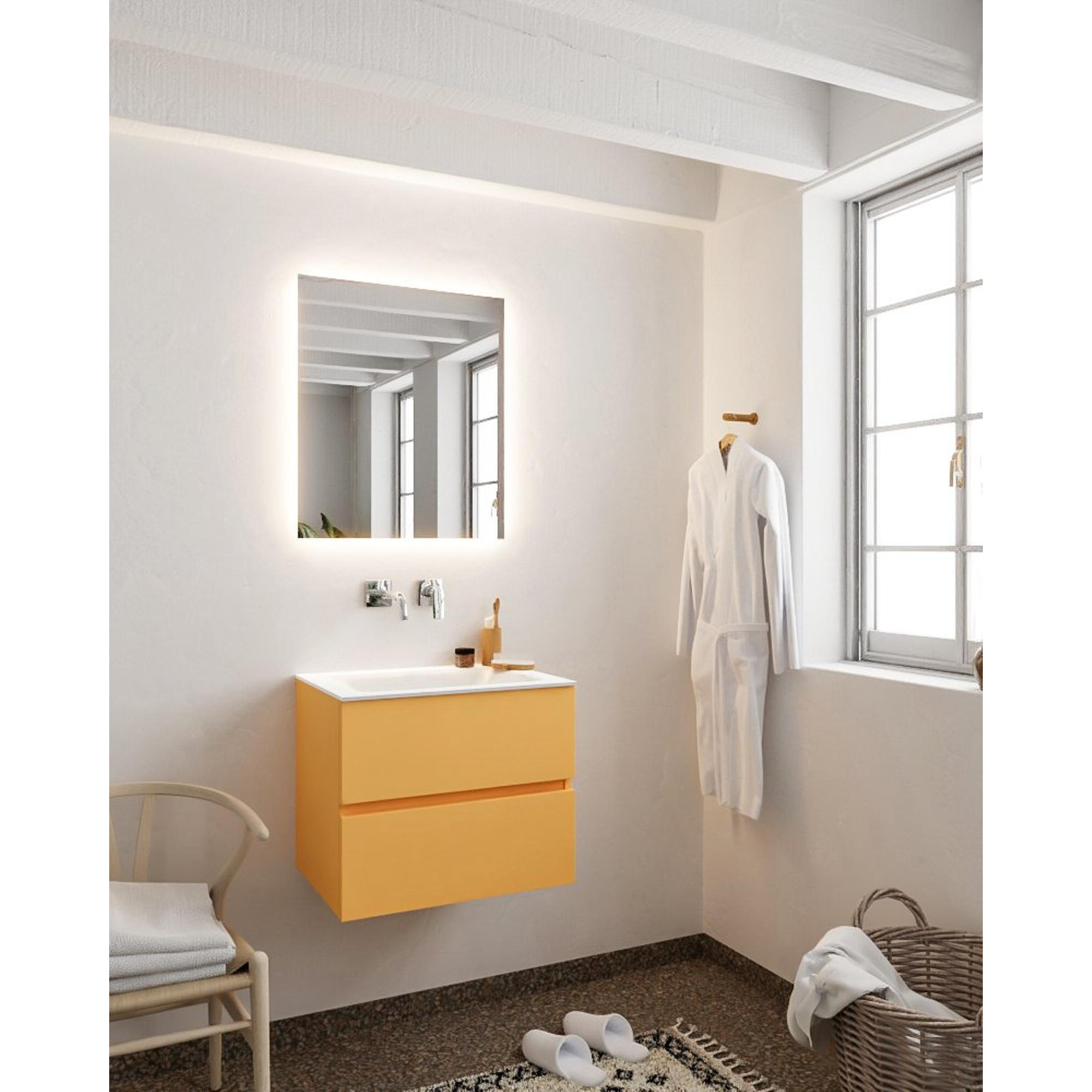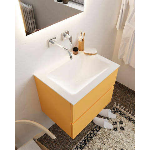 MONDIAZ VICA Ensemble de meuble - 60cm - 2 tiroirs - lavabo Cloud milieu - 0 trou de robinet - solid surface ocre