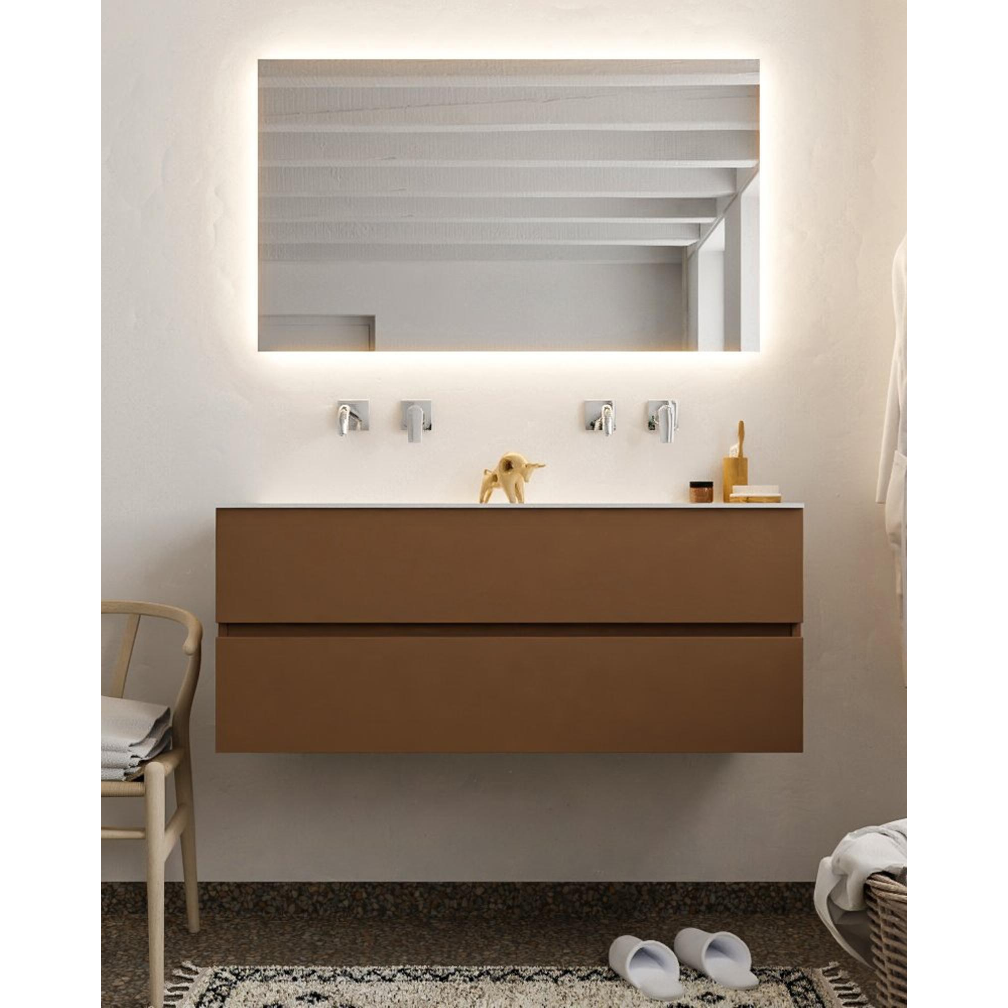 MONDIAZ VICA Ensemble de meuble salle de bain - 120cm - 2 tiroirs - lavabo Cloud double - 0 trous de robinet - solid surface rouille