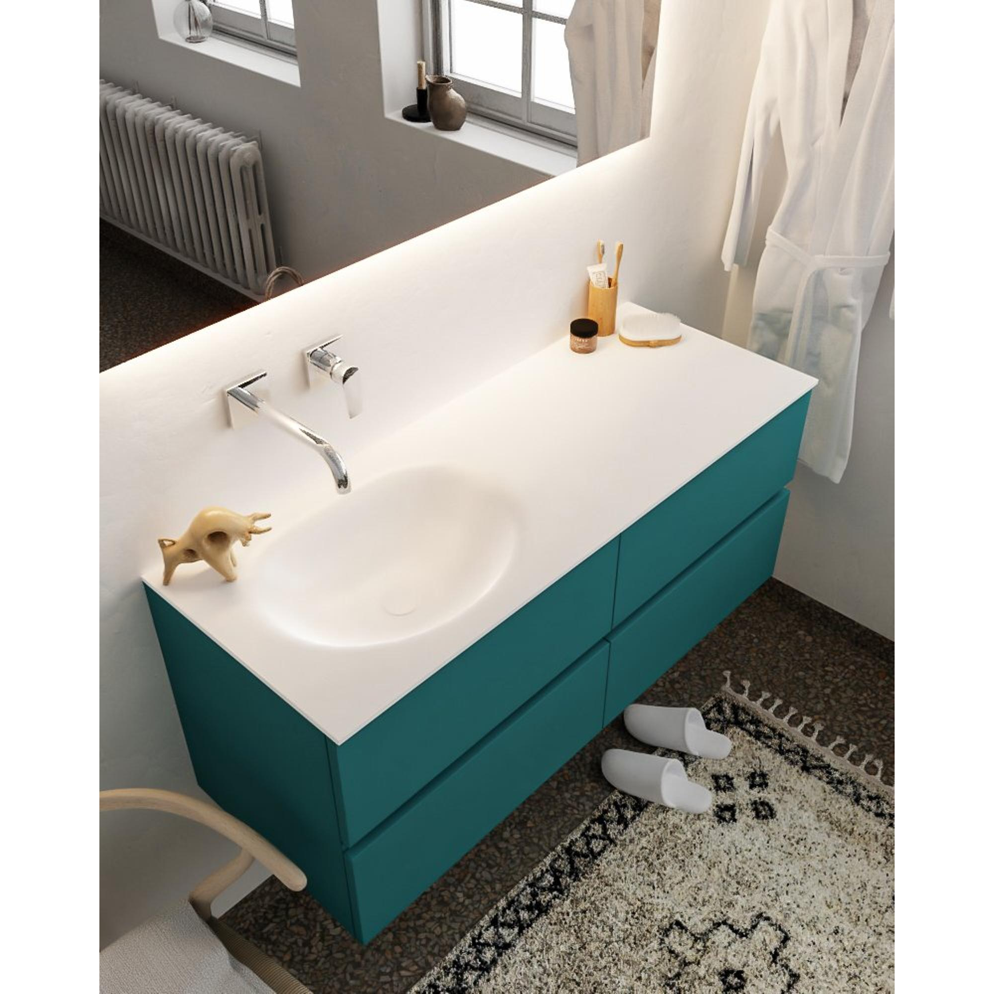 MONDIAZ VICA Ensemble de meuble - 120cm - 4 tiroirs - lavabo Moon gauche - 0 trous de robinet - solid surface smag