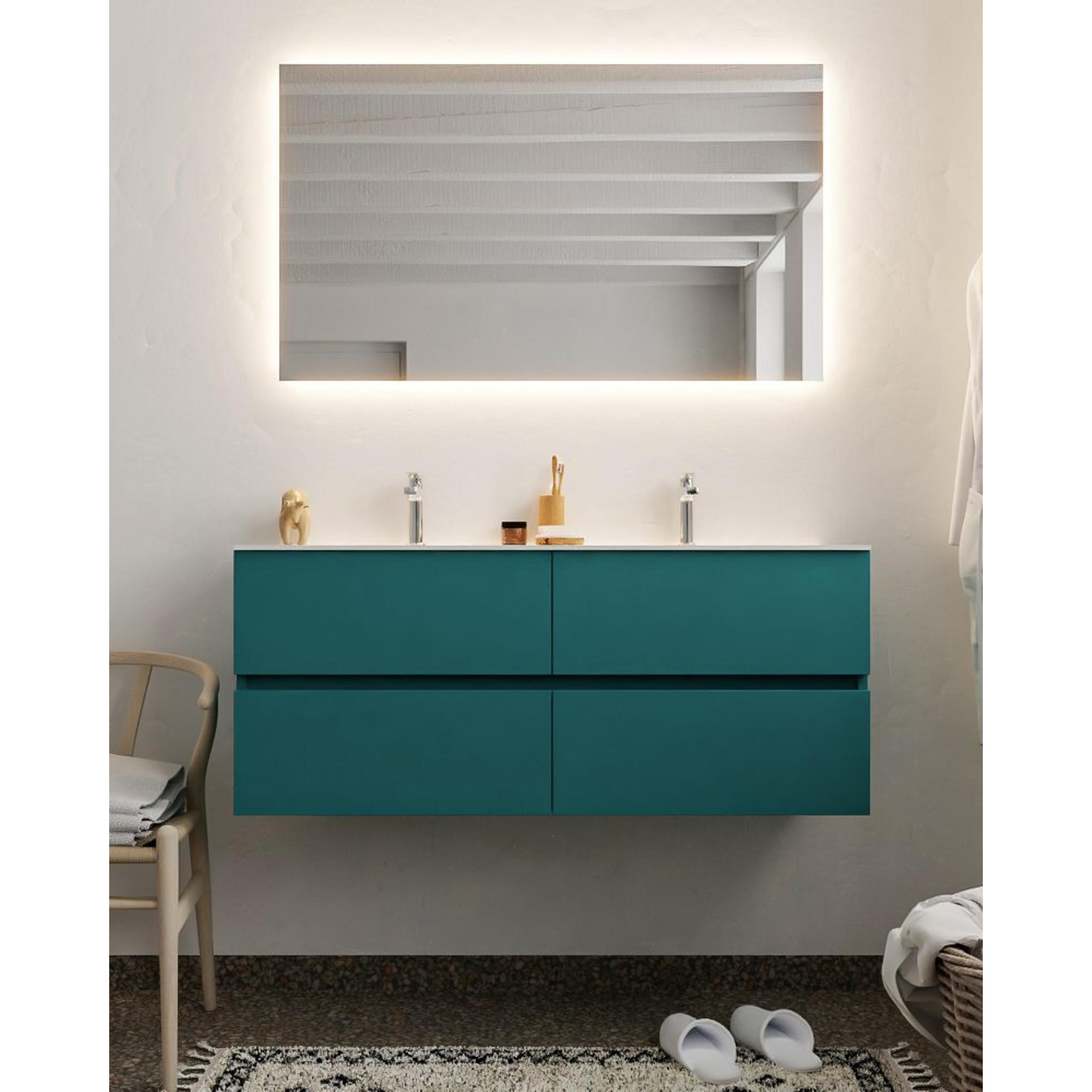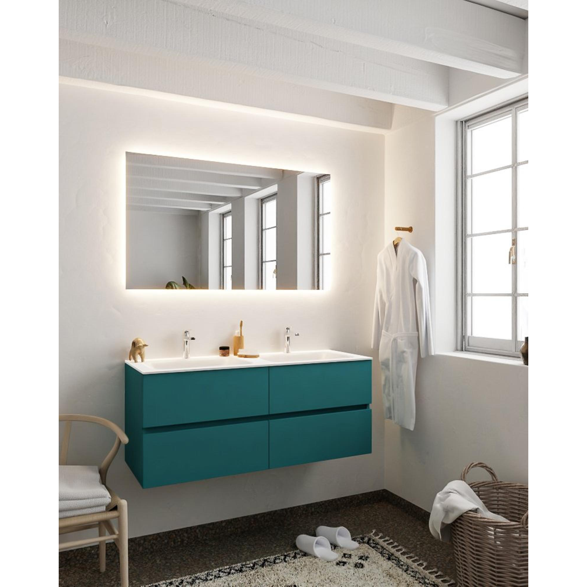 MONDIAZ VICA Ensemble de meuble salle de bain - 120cm - 4 tiroirs - lavabo Cloud double - 2 trous de robinet - solid surface smag