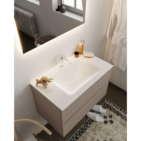 MONDIAZ VICA Ensemble de meuble salle de bain - 80cm - 2 tiroirs - lavabo Cloud central - 1 trou de robinet - solid surface smoke