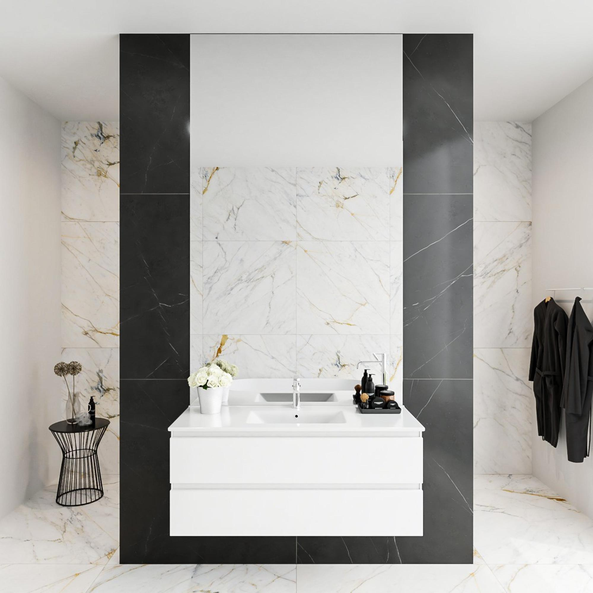MONDIAZ DENTA Ensemble de meuble salle de bain - 100cm - 2 tiroirs - lavabo centré - 1 trou de robinet - Acrylique talc