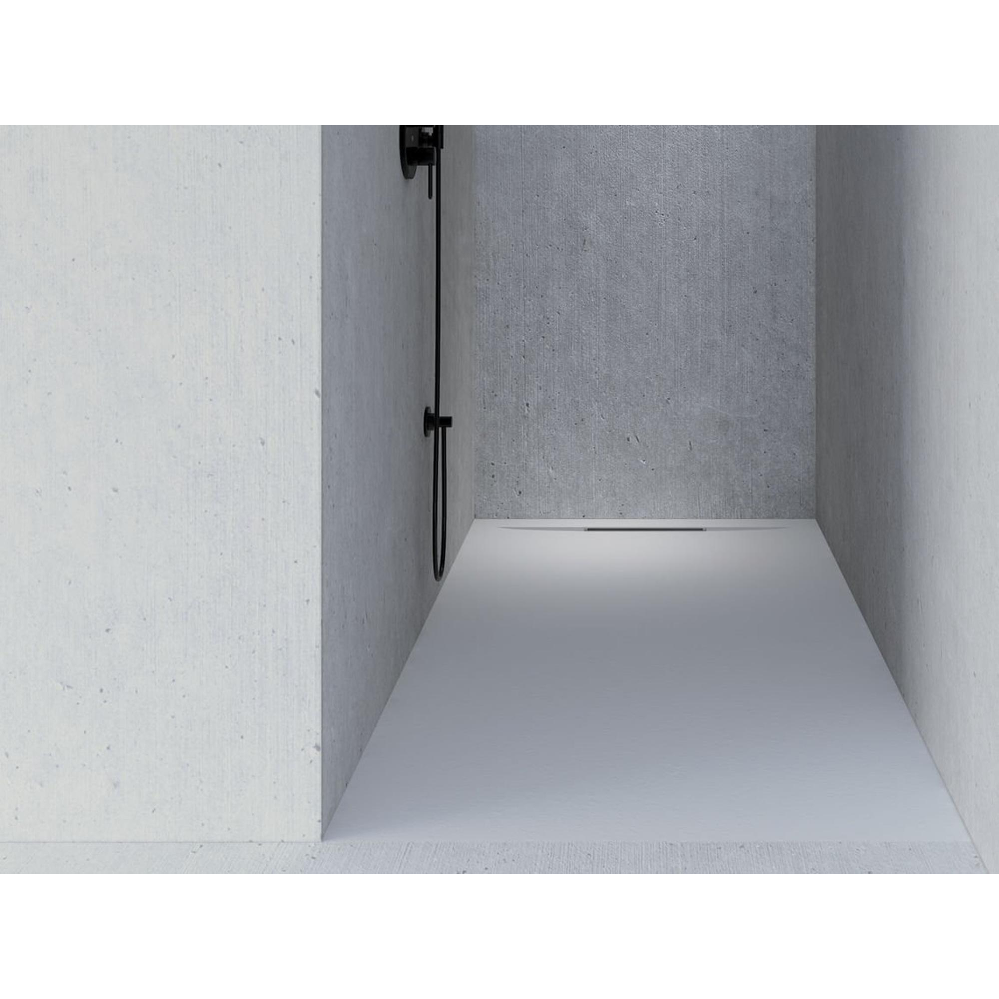 La finition blanche mate avec structure ardoise confère à votre salle de bains une atmosphère à la fois apaisante et marquée. La texture subtile rappelle la pierre naturelle, mais avec les avantages d'un receveur de douche moderne. Le blanc mat se marie aisément avec presque tous les carrelages, que vous optiez pour des carreaux effet bois chaleureux, un marbre chic ou un béton épuré. La bonde de douche intégrée, dans la même couleur et la même structure, crée un ensemble harmonieux : l'évacuation est à peine visible, de sorte que l'attention se porte sur l'ensemble de l'espace. Cela rend ce receveur de douche particulièrement adapté aux amateurs de design qui apprécient une finition minimaliste et haut de gamme, sans perturbation visuelle.