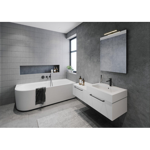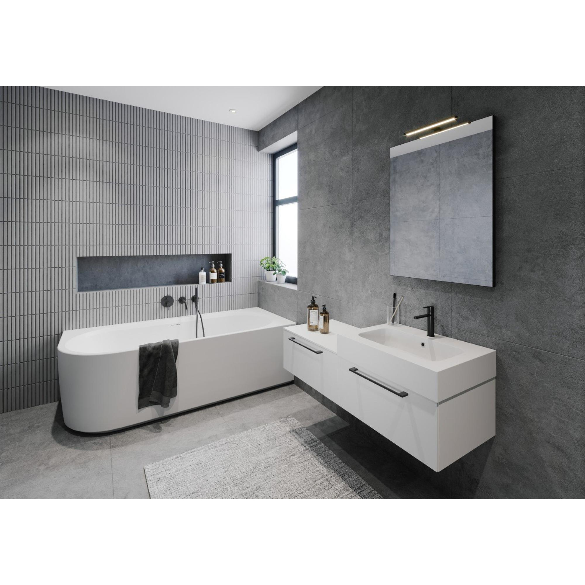 - Acrylique blanc mat avec apparence moderne et apaisante, adapté aux salles de bains design et de type spa.