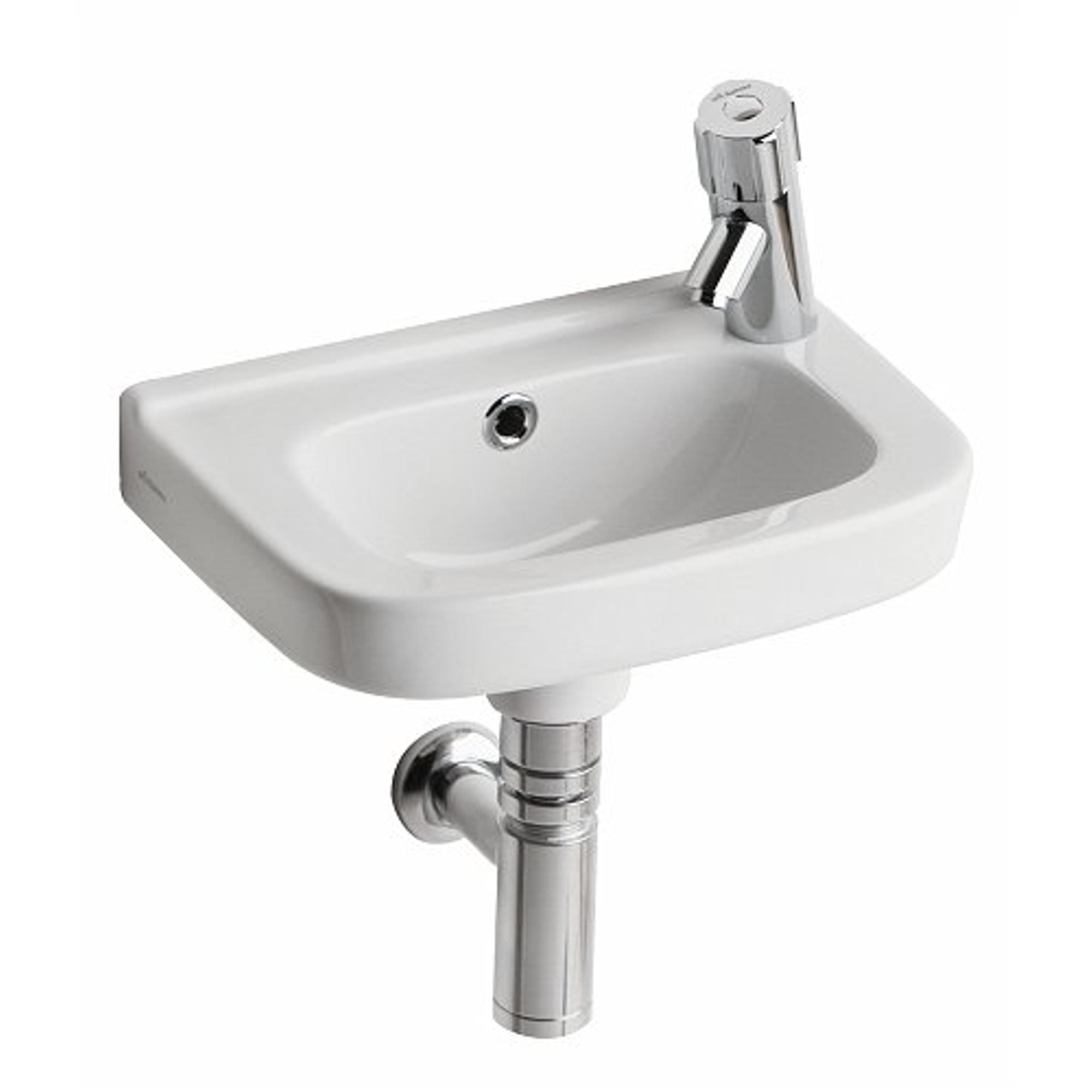 - Lave-mains compact d’environ 36 cm de large et 25 à 28 cm de profondeur, idéal pour les petits WC.
