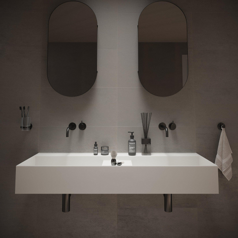- Version sans trous de robinet, parfaite en combinaison avec des mitigeurs muraux ou surélevés