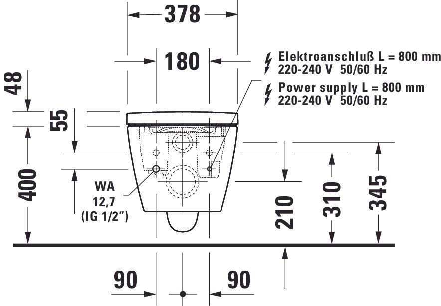 Duravit Sensowash starck f lite WC suspendu japonais low flush 37.8x57.5cm avec siège wc et couvercle blanc