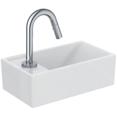 - Lave-mains Tempo 370 x 210 mm en céramique. 1 trou de robinetterie à gauche percé. Sans trop-plein.