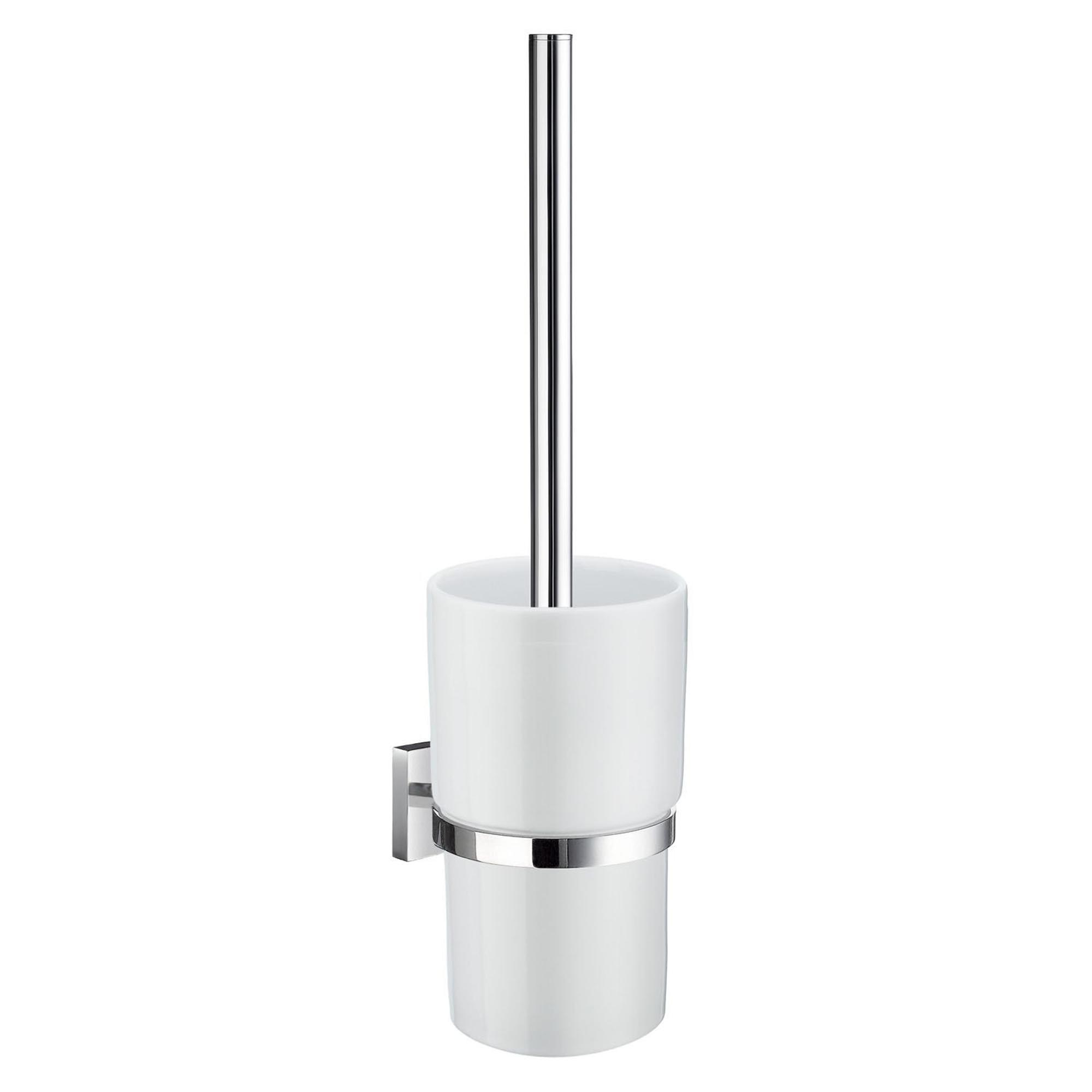 Smedbo House Ensemble brosse WC - autocollant / perçage - Laiton massif Chrome/Porcelaine