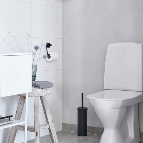 Le Smedbo House Porte-rouleau de papier toilette dégage une apparence moderne qui s'accorde parfaitement avec les salles de bains contemporaines. Le design minimaliste et la finition noire mate créent un accent tendance et stylé dans la pièce. Avec ses dimensions compactes de 14x9.5cm, ce porte-rouleau de papier toilette occupe peu d'espace et est idéal pour les petites comme pour les grandes salles de bains.