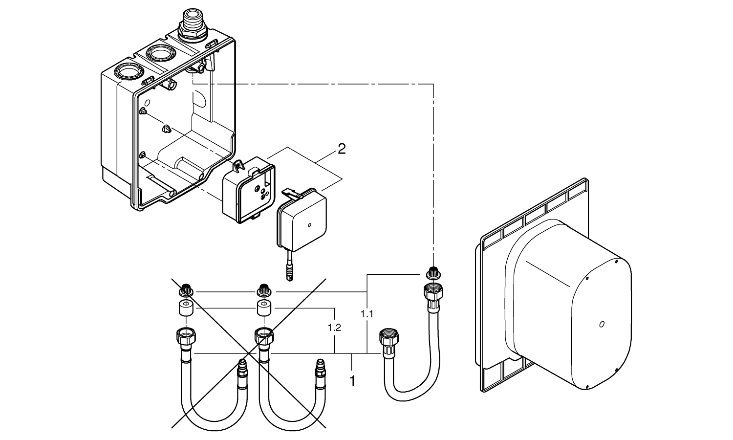 GROHE Eurosmart Cosmopolitan E boîtier encastré pour ensembles apparents infrarouges avec robinet d'arrêt pour eau prémélangée ou eau froide