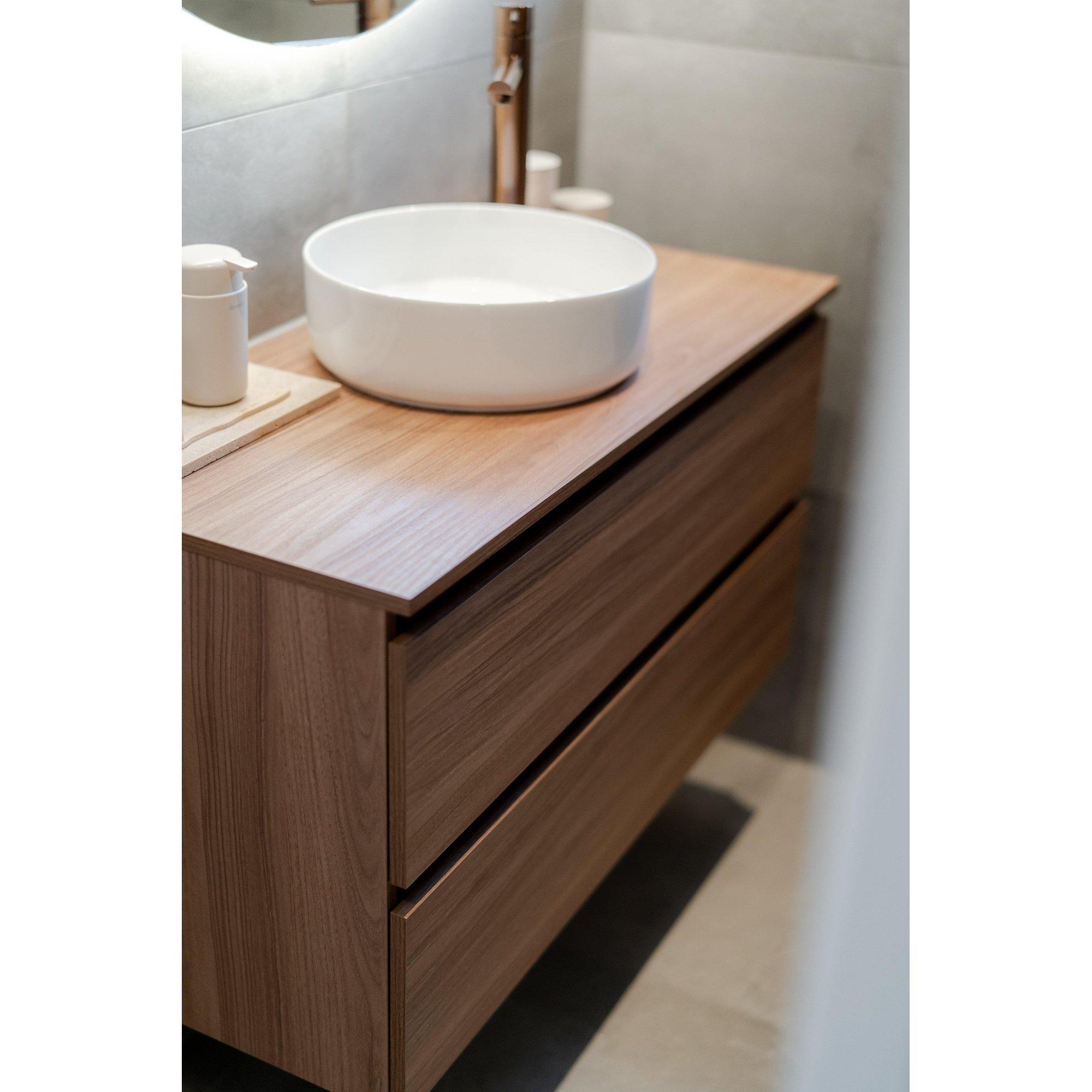 Ink meuble sous lavabo 90x52x45cm 2 tiroirs sans poignée tourniquet en bois chêne pur