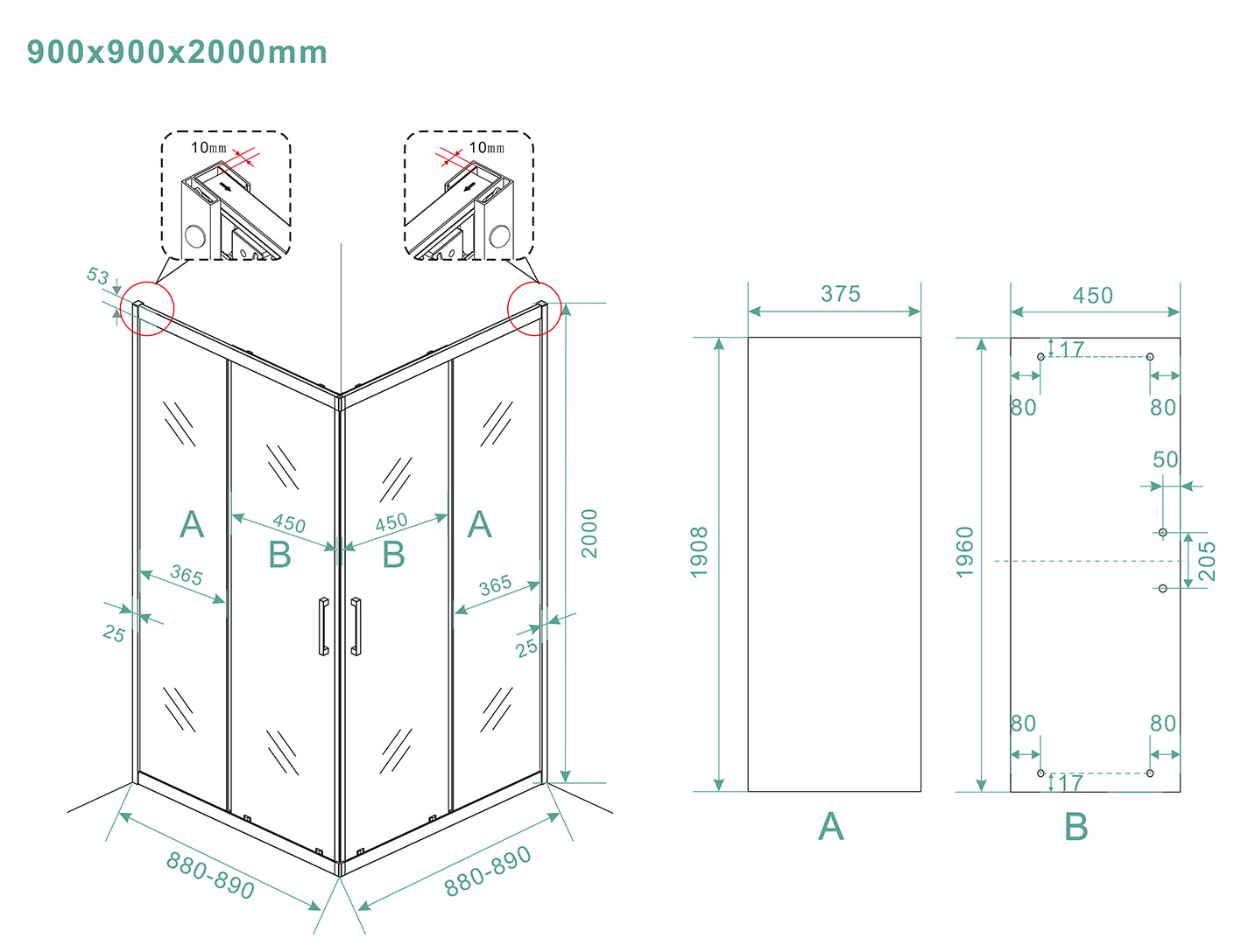Dans les profils de la cabine, il y a un réglage de 1 centimètre. Cette cabine est réglable de 88 à 89 cavec (à ajuster par taille). Cela rend la cabine également adaptée pour être placée sur un receveur de douche. Si vous souhaitez placer la cabine au sol, veuillez tenir compte de la réglabilité indiquée.