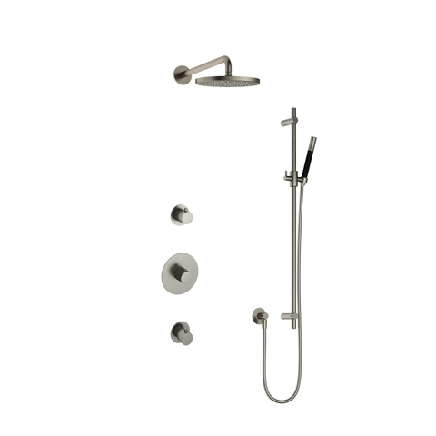 Transformer une salle de bains en un havre de paix et de style commence par le bon ensemble de douche. Cet ensemble de douche de tête encastré allie sans effort élégance et fonctionnalité et élève votre douche quotidienne à un niveau supérieur. La surface subtile en nickel brossé apporte une touche moderne et intemporelle, tandis que la généreuse douche de tête vous enveloppe de jets d'eau doux et réguliers qui vous procurent une sensation de pure détente. Grâce à la combinaison astucieuse d'un bras mural, d'une douchette à main en forme de barre et d'une barre de douche, vous profitez d'une flexibilité et d'un confort maximum. Que vous souhaitiez vous rafraîchir rapidement ou vous détendre longuement, cet ensemble s'adapte à vos souhaits et fait de chaque douche un moment de luxe et de plaisir.