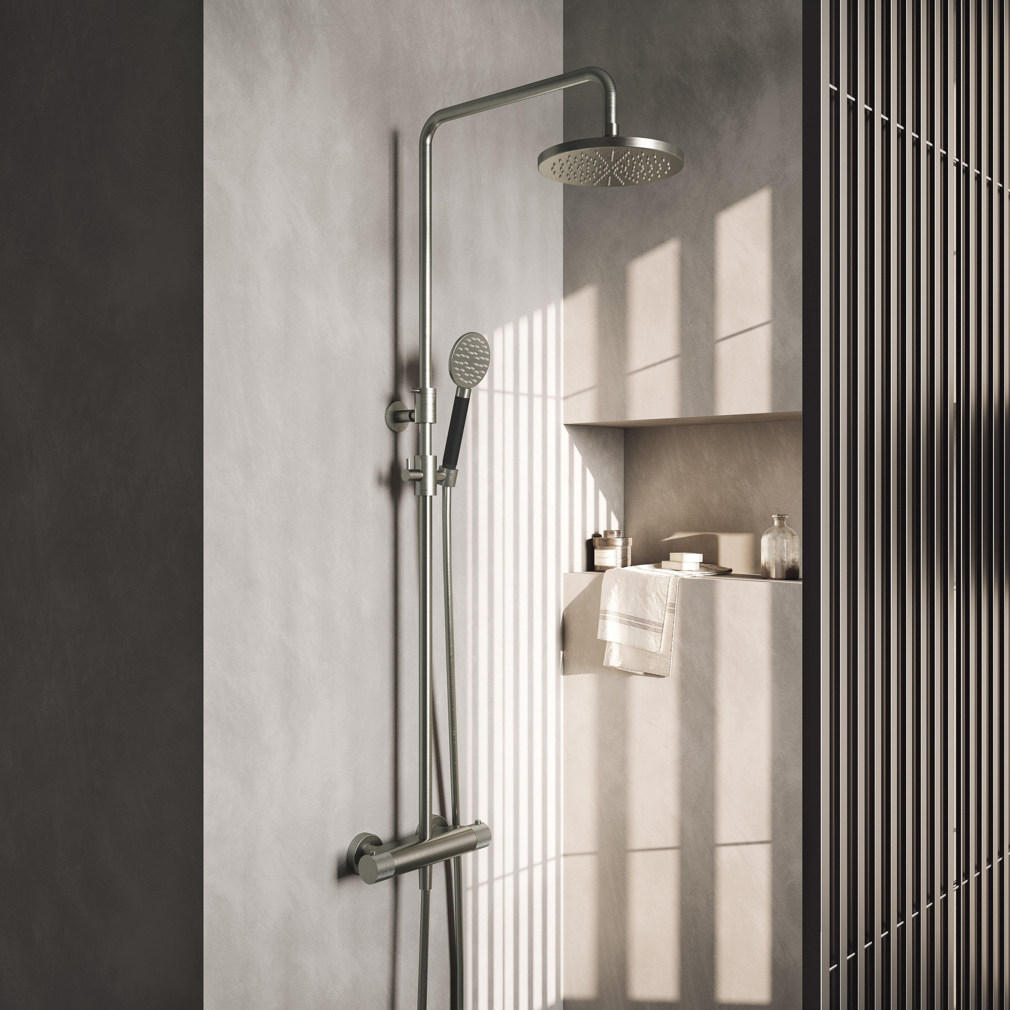 Hotbath Cobber X SDS9 ensemble de douche thermostatique avec douche pluie ronde de 20 cm et douchette ronde en nickel brossé
