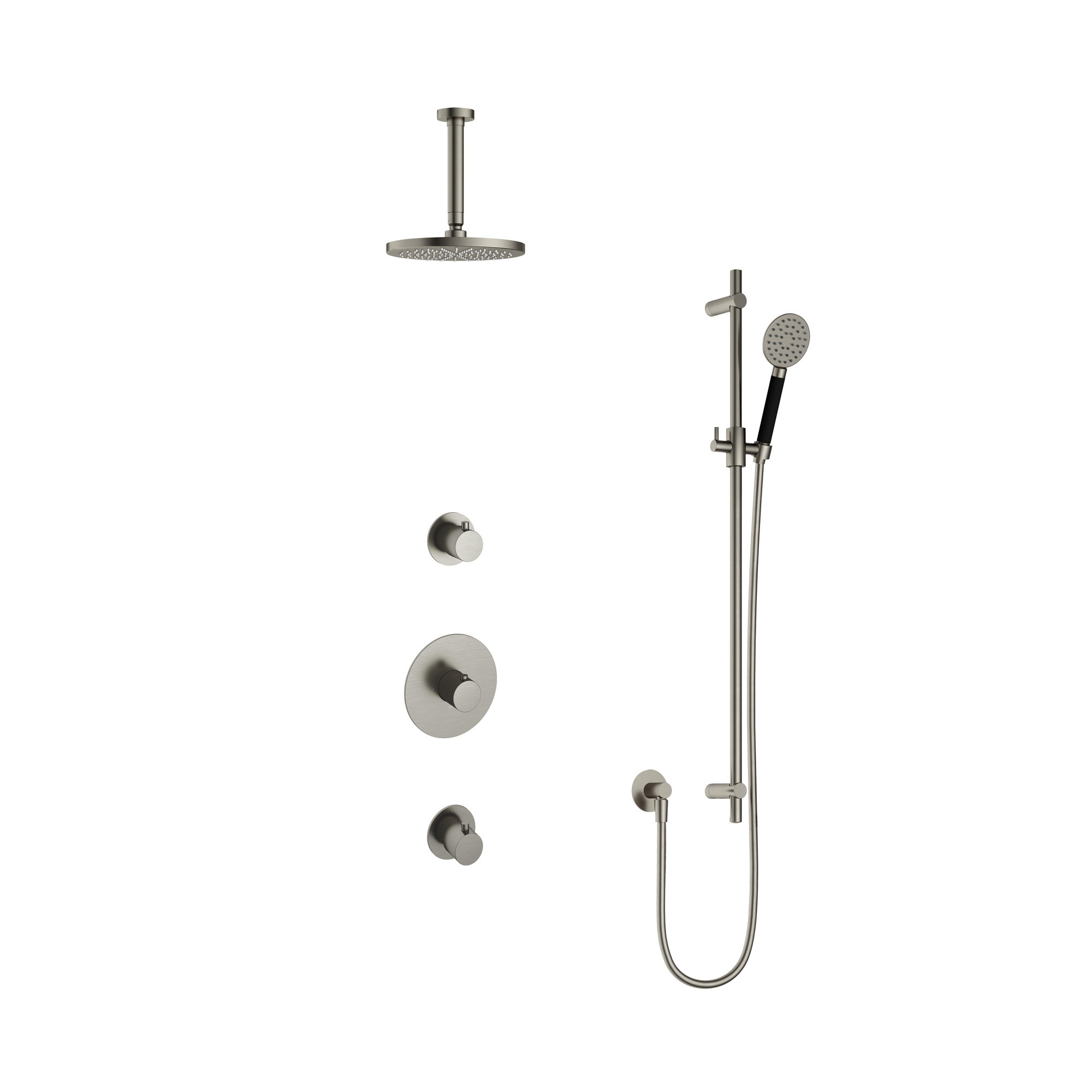 Hotbath Cobber IBS20 Ensemble de douche pluie encastré - bras de plafond 15 cm - pomme de douche ronde 20 cm - douchette 3 jets - barre de douche - nickel brossé