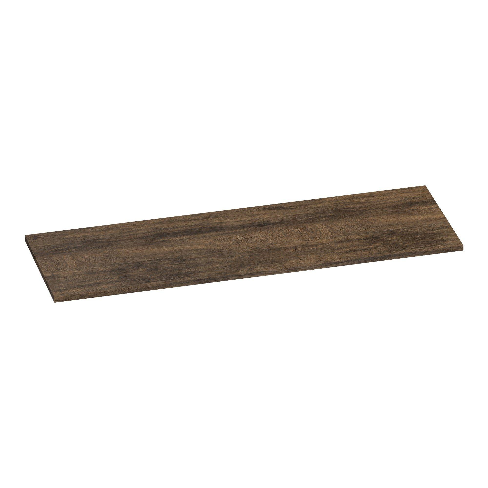 Avec ce plan de toilette spacieux, vous créez en une seule fois une base calme et élégante pour votre meuble de salle de bains. Sa ligne épurée et fine s’intègre parfaitement dans les salles de bains modernes et minimalistes, mais se combine aussi très bien, grâce à la couleur bois chaleureuse, avec un style naturel ou industriel. Grâce à sa largeur généreuse, ce plan est idéal au-dessus d’un meuble double vasque ou pour une grande vasque avec un espace de dépose supplémentaire pour vos produits de toilette quotidiens. Si vous recherchez un plan pratique et facile d’entretien qui ait en même temps un aspect luxueux sans être extrêmement fragile, cette version est un choix particulièrement astucieux. Surtout dans les salles de bains familiales ou très utilisées, où le design et la fonctionnalité doivent aller de pair, ce plan de toilette révèle tout son potentiel.