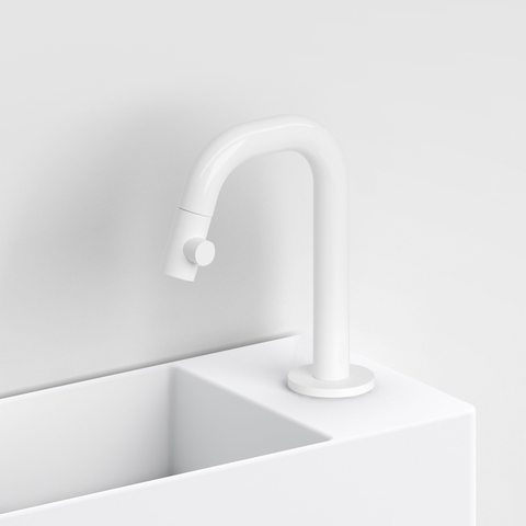 Les lignes élancées et le bec court rendent ce robinet de lave-mains particulièrement adapté aux petits lave-mains et aux vasques étroites. Grâce à ses dimensions compactes, il reste discret visuellement, tandis que ses lignes droites et ses détails minimalistes créent au contraire un effet design marqué. La finition blanche mate renforce ce caractère moderne et apaisant et permet à l’ensemble de paraître propre et bien ordonné. Dans les espaces compacts, ce sont justement les détails qui font la différence : ce robinet vous aide à rendre vos toilettes visuellement plus grandes et plus lumineuses, sans sacrifier la fonctionnalité. Associez-le à un siphon blanc mat ou au contraire noir contrasté et à des accessoires coordonnés pour un ensemble harmonieux.Commande confortable au quotidien
