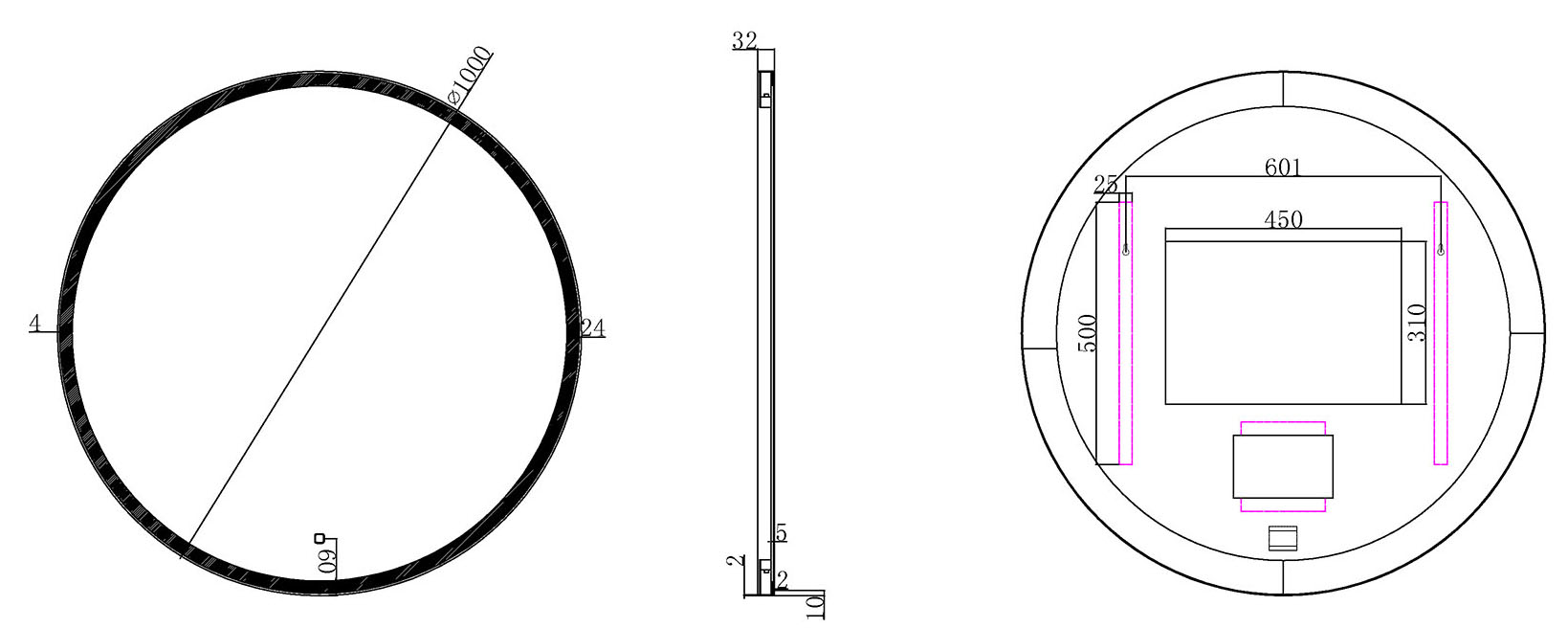 - Miroir rond d'un diamètre de 100 cm, adapté à divers styles de salle de bains