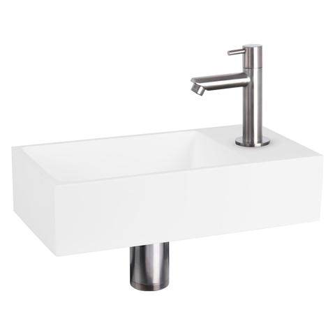 Differnz Solid kit lave-mains - 36x18.5x9cm - Rectangulaire - 1 trou de robinet - robinet chromé mat droit - Solid Surface blanche