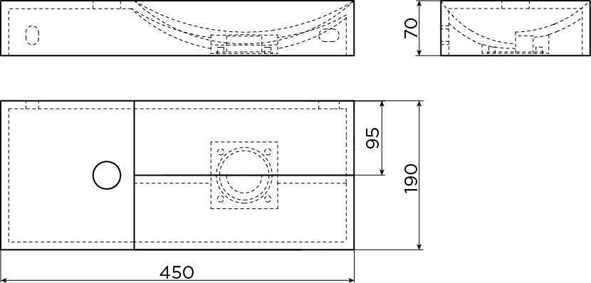 .Le Vale de Clou a une dimension de 45x19 x7 cm. Grâce à sa profondeur de seulement 19 cm, cette lave-mains convient également aux toilettes de petite taille. La lave-mains peut être placée sur le dessus d'un lavabo ou être fixée au mur. La lave-mains ne contient pas de trou de débordement, ce qui vous donne un look plus serré. Le design ressort encore plus fort lorsque vous l'associez à un robinet moderne..