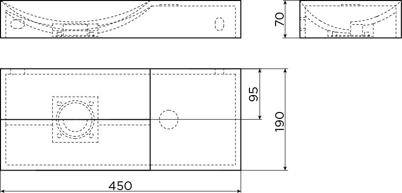 Avec des dimensions de 45x19x7 cm, ce lave-mains est un excellent choix si vous disposez de peu d’espace mais souhaitez néanmoins vous laver les mains confortablement. La faible profondeur de 19 cm fait qu’il dépasse à peine dans la pièce, ce qui vous laisse davantage de liberté de mouvement et donne une impression de toilettes plus spacieuses. Grâce à la forme rectangulaire, on obtient en outre une cuve de lavage pratique et un plateau étroit pour, par exemple, un distributeur de savon. L’orientation avec trou de robinet à droite est idéale si votre installation de conduites ou la disposition du mur l’exige, de sorte que vous puissiez raccorder le lave-mains proprement à la situation existante.