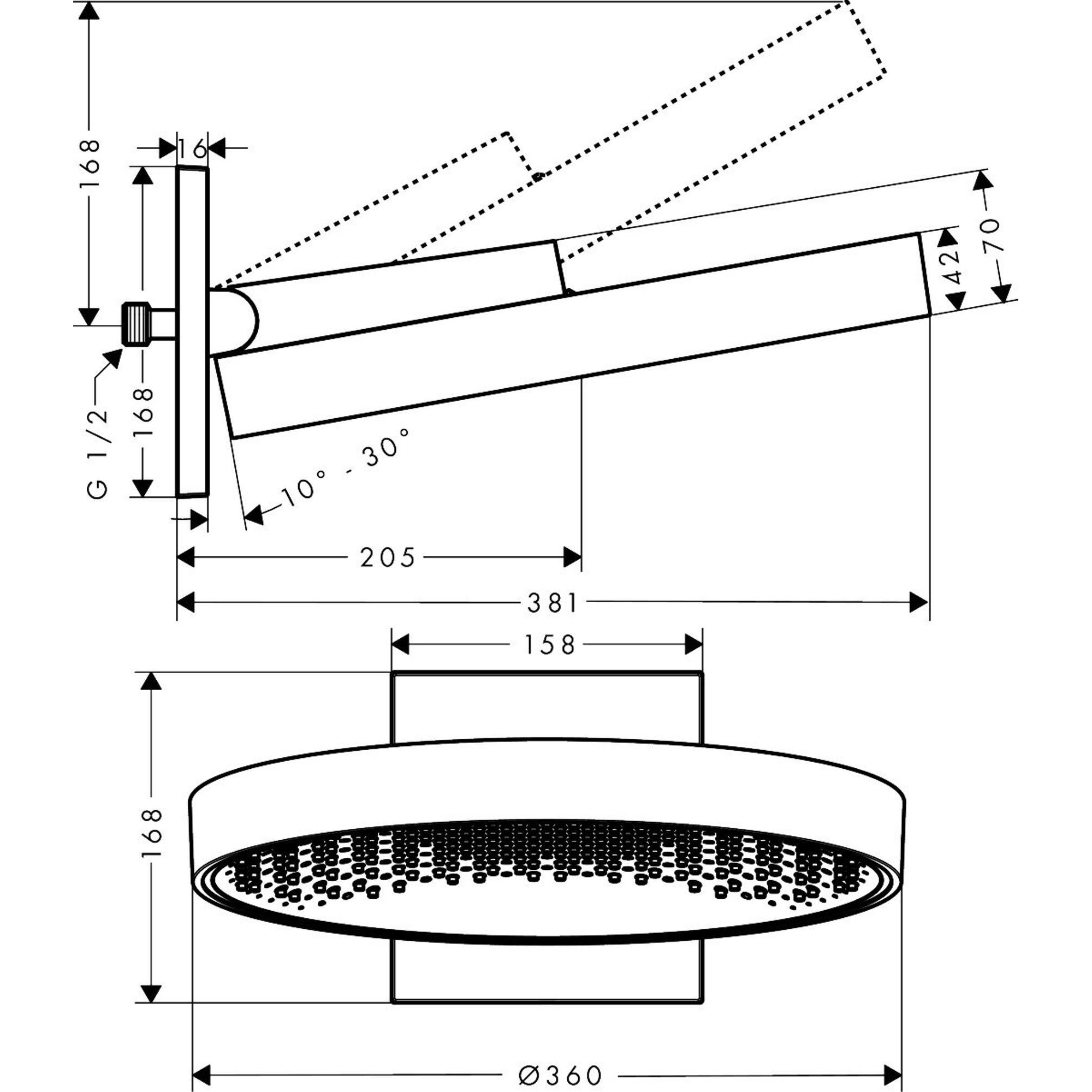 - Diamètre de 360 mm pour une distribution généreuse et uniforme de l'eau