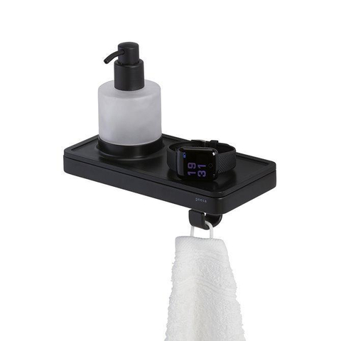 Geesa Frame Distributeur de savon avec tablette et crochet porte-serviette Noir
