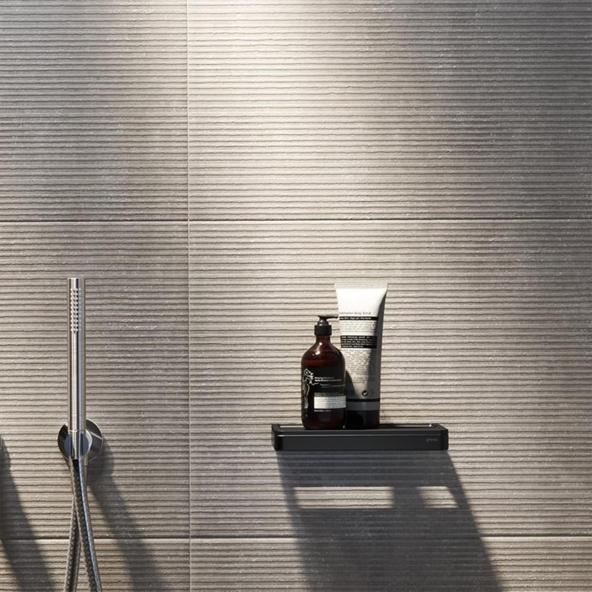 La forme rectangulaire épurée, le format compact et la finition entièrement noire font de cette tablette un véritable objet de style. Une fois montée au mur, elle crée un effet aérien et flottant qui permet à votre salle de bains de conserver une impression d’espace. L’aspect mat et les lignes fines s’intègrent parfaitement aux tendances populaires telles qu’industriel, hôtel chic et minimaliste. Vous pouvez facilement la combiner avec des robinets noirs, des profilés de douche ou des accessoires pour un ensemble harmonieux. Même dans une salle de bains calme et neutre, la tablette constitue un accent subtil qui apporte un peu plus de caractère et de profondeur à la pièce, sans dominer.