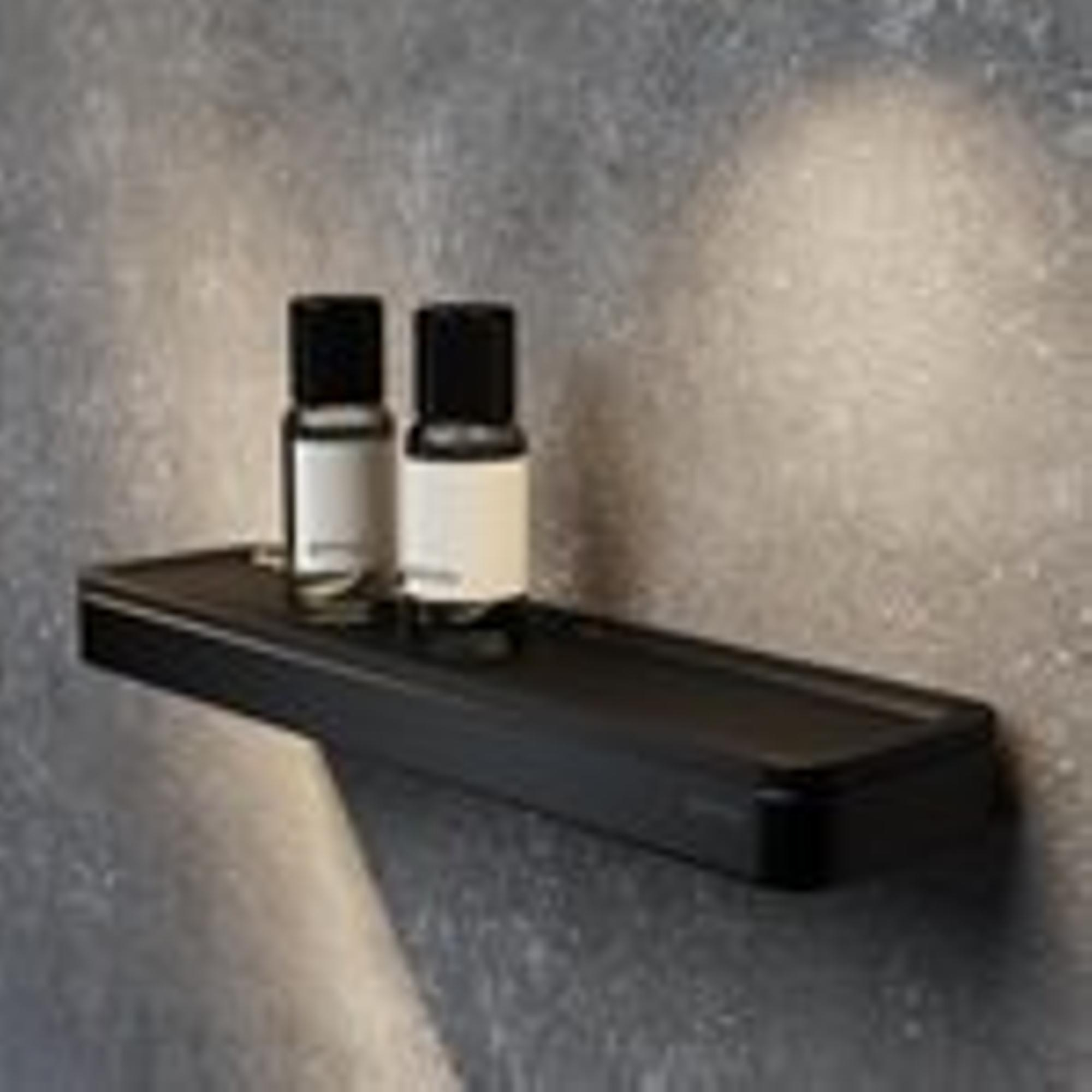 Avec une longueur de 26 cm et une profondeur de 6,5 cm, cette planchette offre exactement l’espace nécessaire pour vos produits de soin les plus utilisés, sans encombrer le mur. La forme rectangulaire et la finition noir mat assurent un aspect calme et haut de gamme qui se marie sans effort avec le sanitaire noir, les robinets noirs et les autres accessoires. Vous créez ainsi une harmonie dans votre salle de bains ou vos toilettes. Les lignes épurées en font en outre un beau choix au-dessus d’un lavabo minimaliste ou à côté d’une douche à l’italienne, où chaque détail compte. Comme elle est fixée au mur, vous gardez le plan de travail dégagé et la pièce paraît plus grande et plus ordonnée.