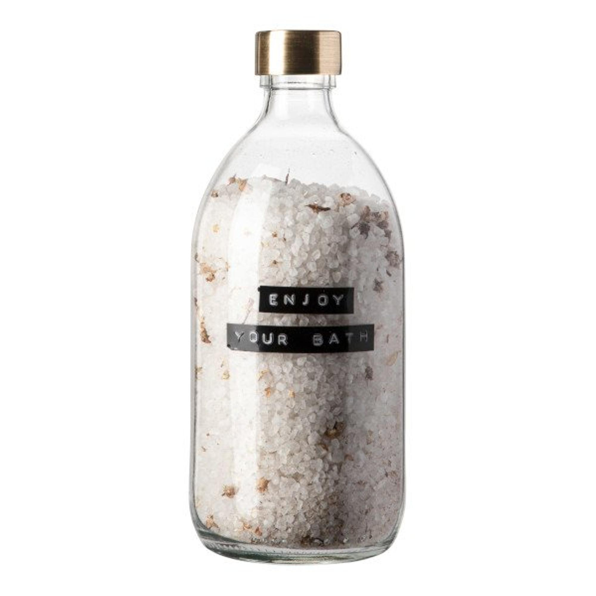 Wellmark Sel de bain verre transparent bouchon laiton 500ml Camomille texte ENJOY YOUR BATH