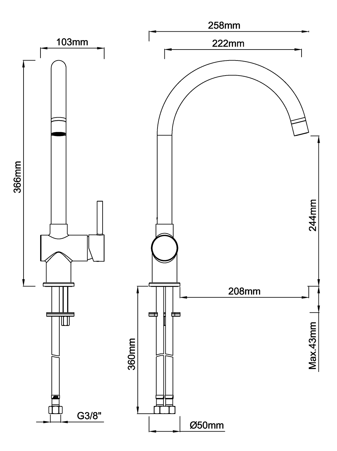 La couleur gunmetal mate foncée offre un aspect contemporain et luxueux qui s’harmonise facilement avec divers styles de cuisine. Que vous ayez une cuisine moderne aux lignes épurées et aux détails minimalistes, ou que vous recherchiez un look industriel robuste, ce robinet ajoute une touche élégante. Le design intemporel avec des courbes subtiles fait que le robinet n’est pas seulement fonctionnel, mais aussi un véritable élément décoratif. Vous profitez ainsi non seulement d’une utilisation pratique, mais aussi d’une cuisine soignée et réfléchie.