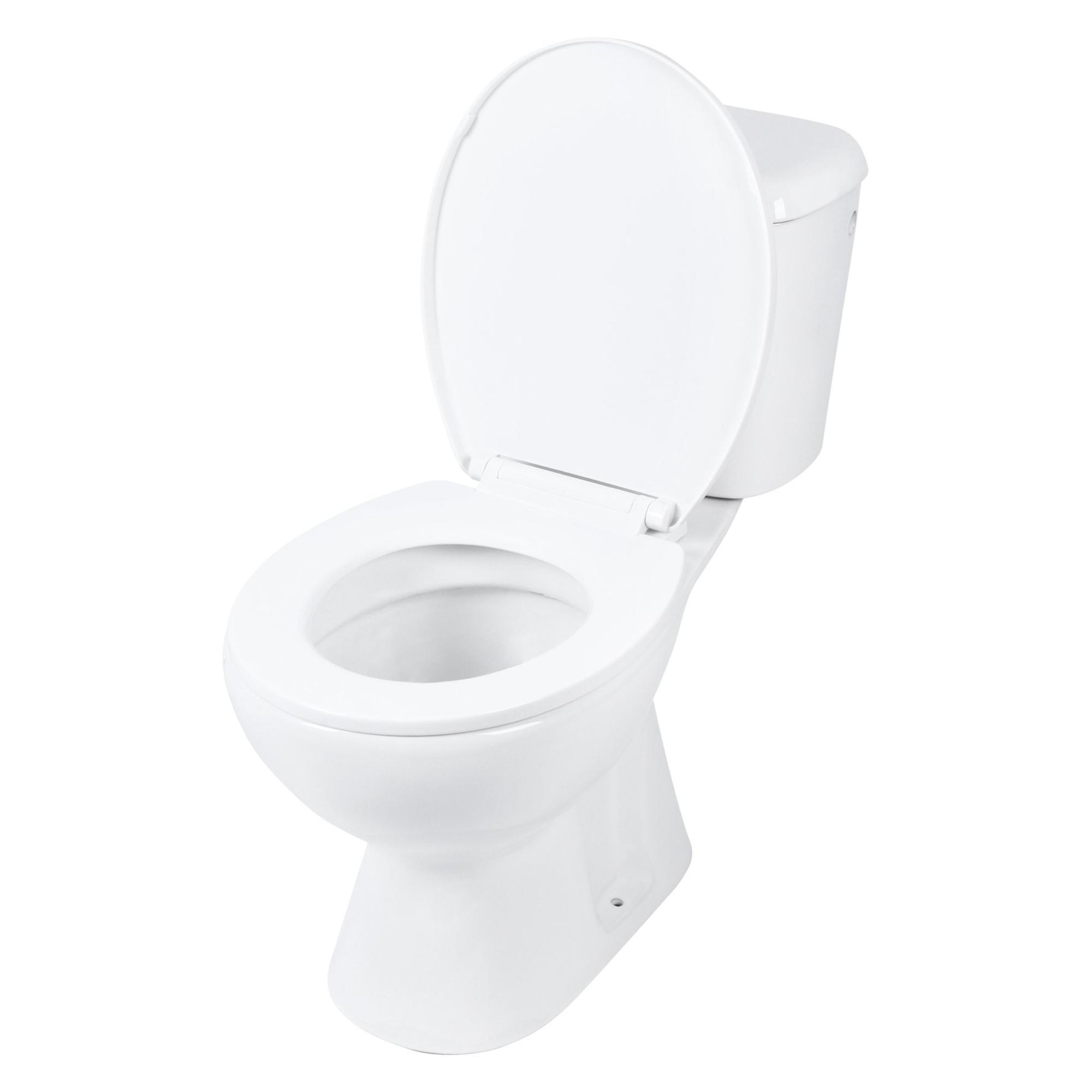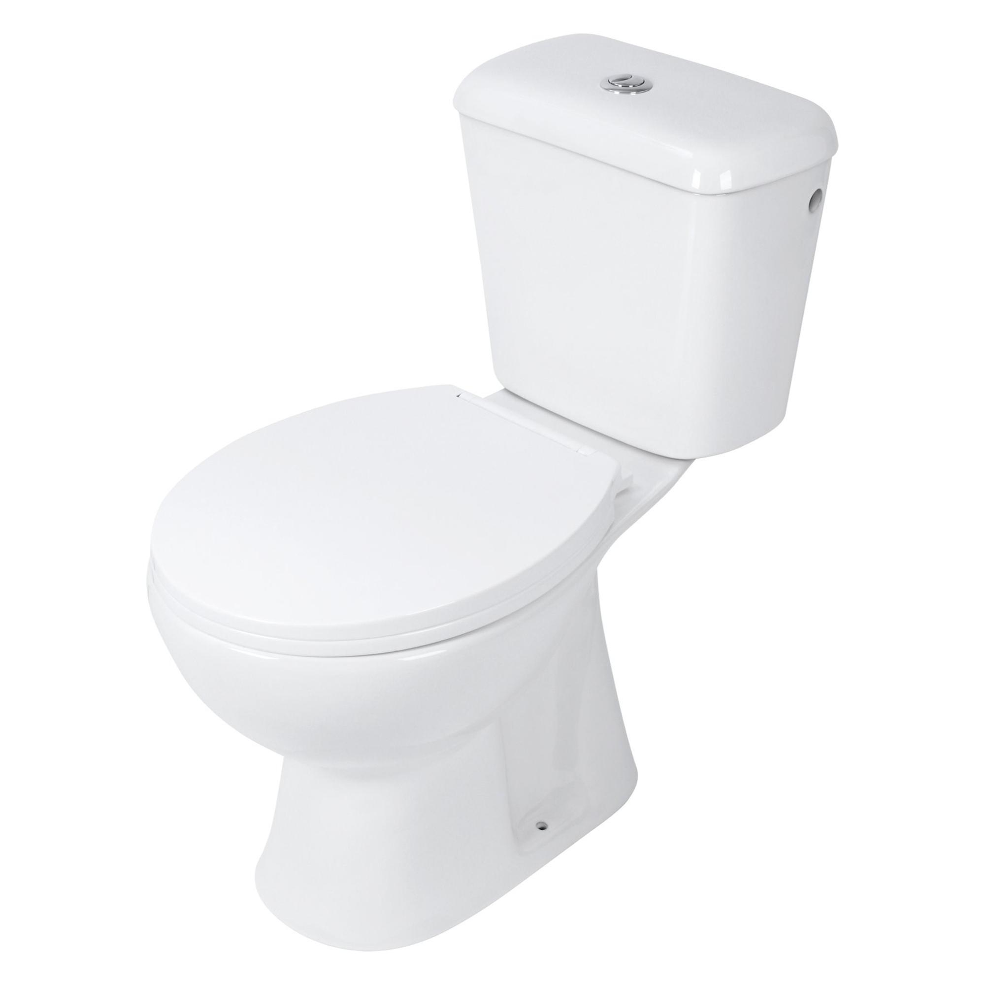- Ensemble duobloc complet : cuvette, réservoir et abattant WC dans un seul colis, prêt à être monté.