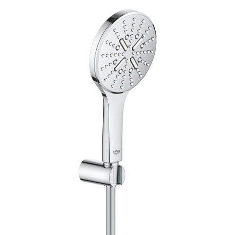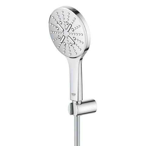 GROHE Rainshower SmartActive 130 Ensemble de douchette - 3 types de jets - rond - avec support - flexible lisse - 150 cm - chrome