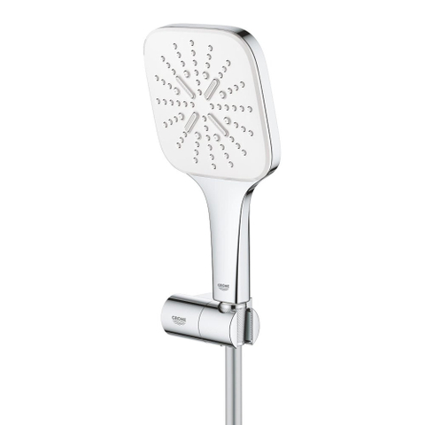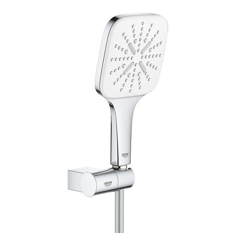 GROHE Rainshower SmartActive 130 Cube Ensemble de douchette à main - 3 types de jets - carré - avec support - réglable - flexible lisse - 150 cm - chrome/blanc lunaire