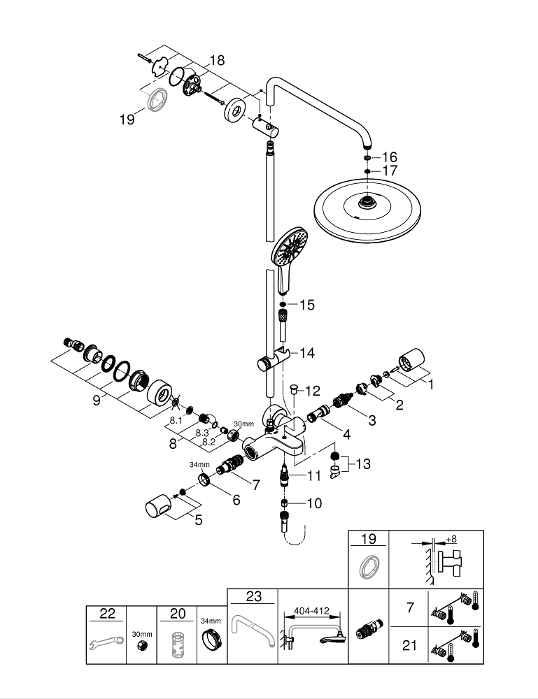 | Diamètre tête de douche | 31 à 40 cm | |