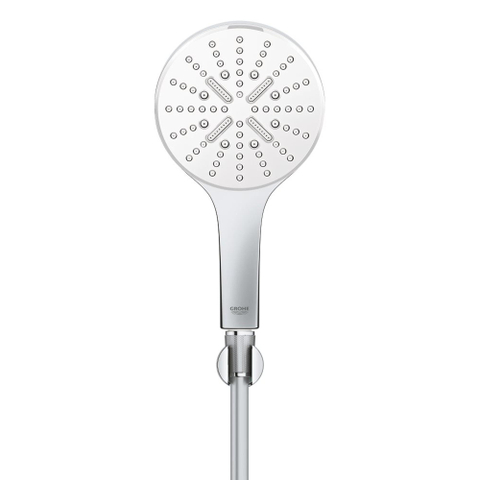 GROHE Rainshower SmartActive 130 Ensemble de douchette - 3 types de jets - rond - avec support - flexible lisse - 150 cm - chrome/blanc lunaire