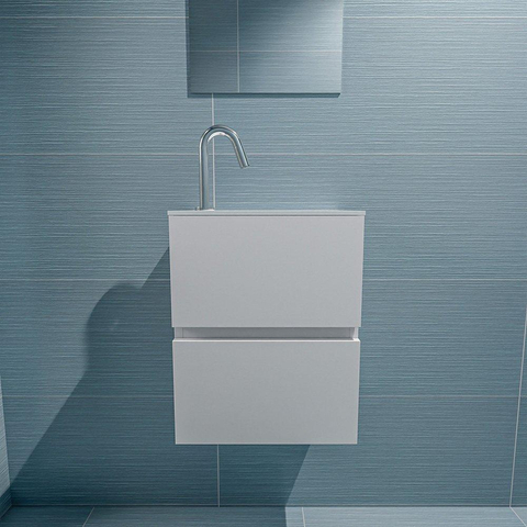 MONDIAZ ADA Meuble de toilettes - 40x30x50cm - 1 trou de robinet - 2 tiroirs - talc mat - lavabo à droite - Solid surface - Blanc