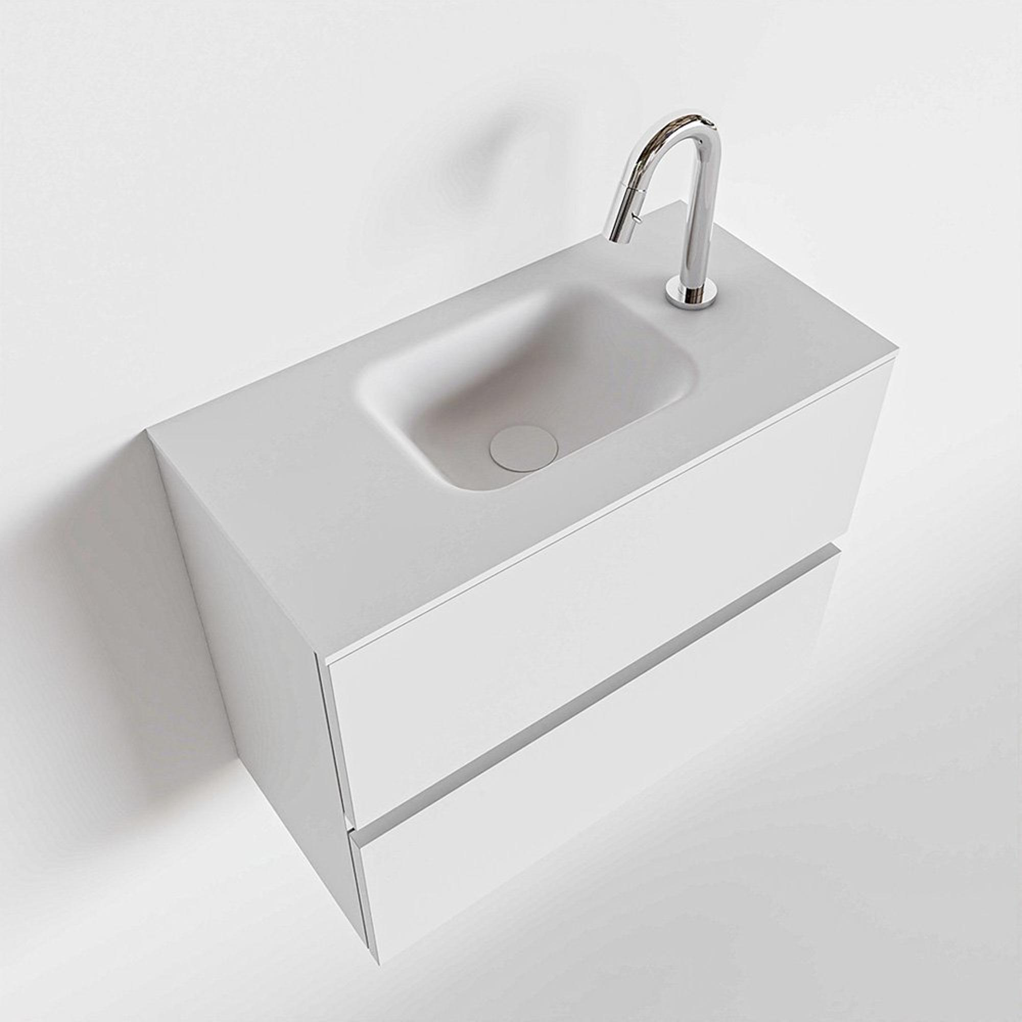 MONDIAZ ADA Meuble de toilettes - 60x30x50cm - 1 trou de robinet - 2 tiroirs - finition talc mate - lavabo au milieu - Solid surface - Blanc