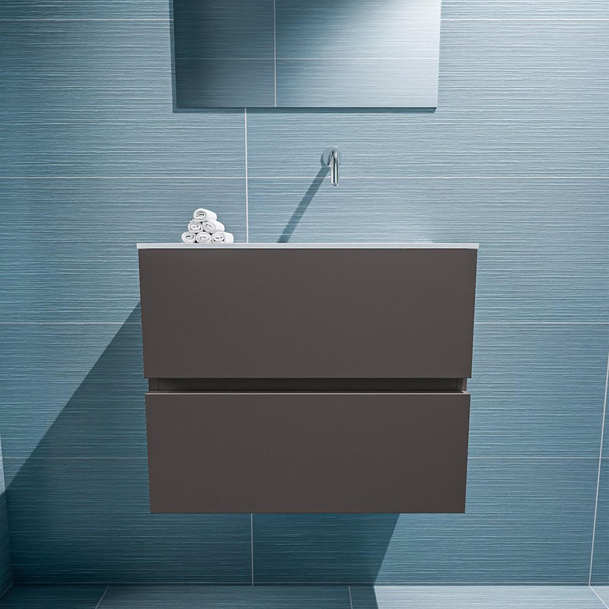 MONDIAZ ADA Meuble WC - 60x30x50cm - 0 trous de robinet - 2 tiroirs - gris foncé mat - vasque à droite - Solid surface - Blanc