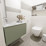 Améliorez vos toilettes grâce à la populaire série de meubles de lave-mains ADA ! Ici vous voyez le meuble suspendu ADA de 60cm de largeur avec 2 de tiroirs en couleur Army mat et un lave-mains modèle LEX en solid surface Wit. La position de la vasque est à Links avec 1 trou de robinet. Nous avons déjà rassemblé plus de 600 variantes de cette série de meubles de lave-mains!