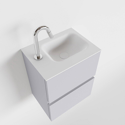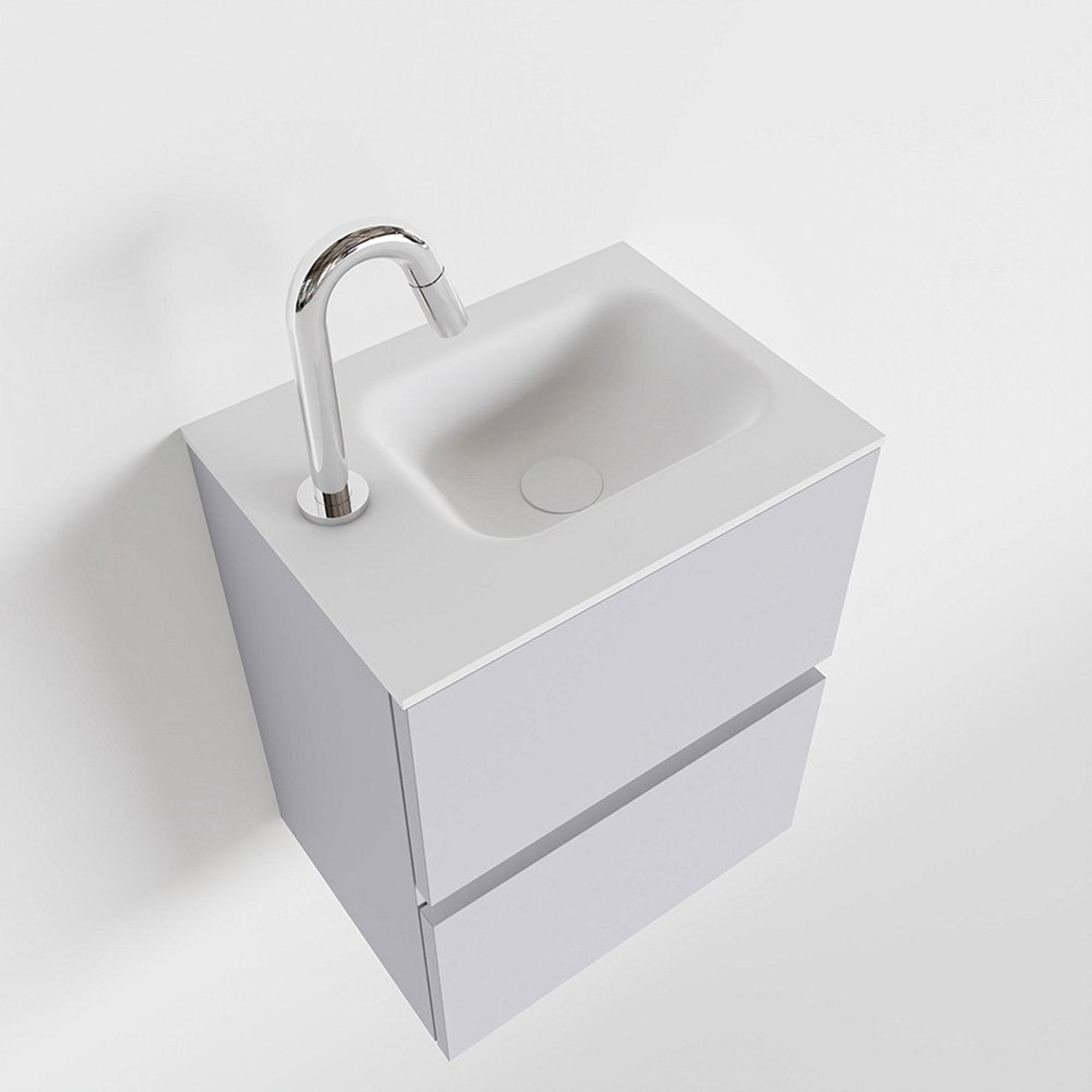 MONDIAZ ADA Meuble WC - 40x30x50cm - 1 trou de robinet - 2 tiroirs - cale mat - vasque à gauche - Solid surface - Blanc