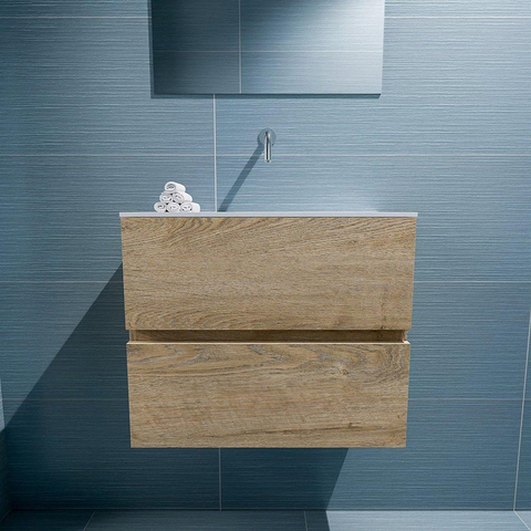 MONDIAZ ADA Meuble de toilettes - 60x30x50cm - 0 trous de robinet - 2 tiroirs - chêne blanchi mat - vasque au milieu - Solid surface - Blanc