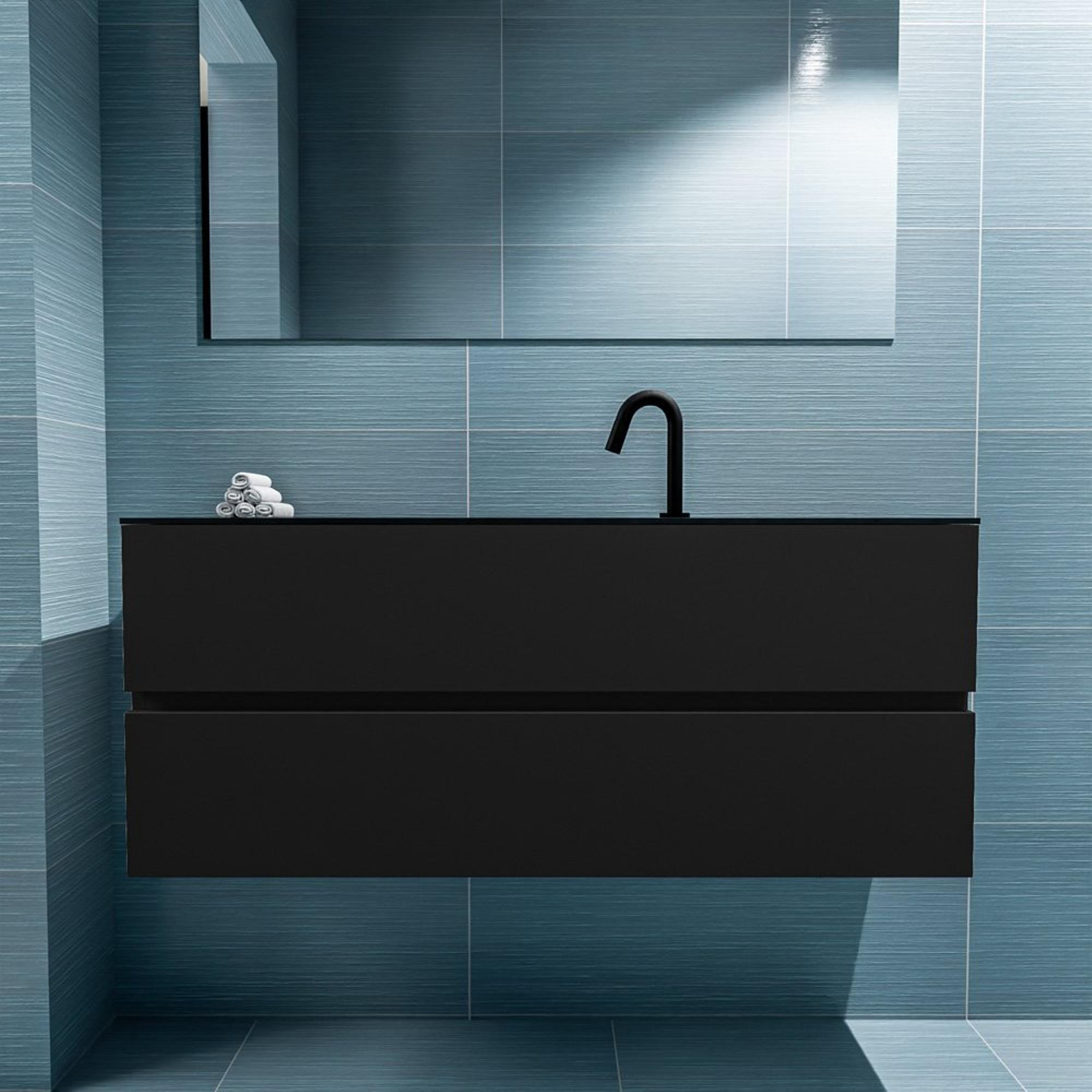 MONDIAZ ADA Meuble de toilettes - 120x30x50cm - 1 trou de robinet - 2 tiroirs - urban mat - vasque au centre - Solid surface - Noir