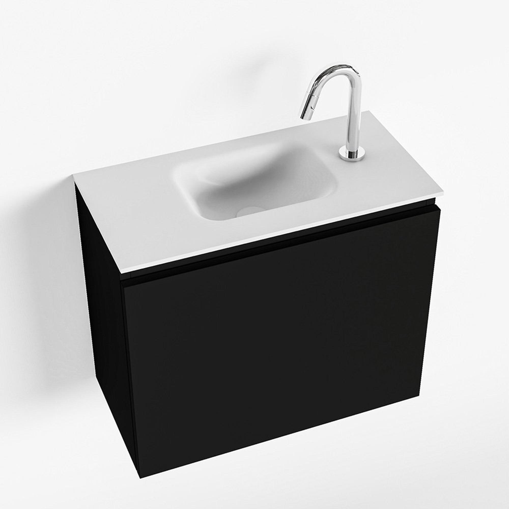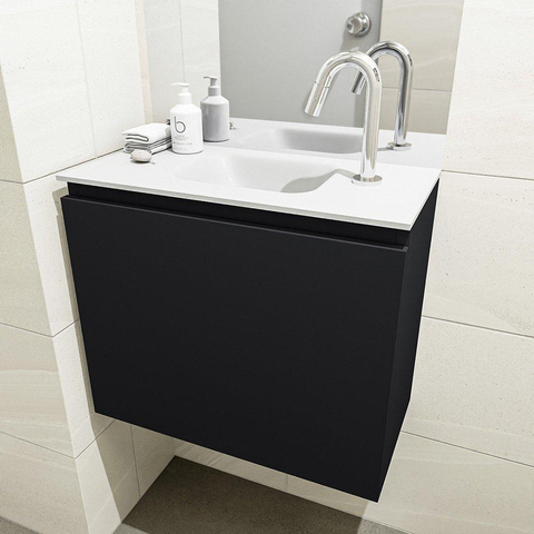MONDIAZ OLAN Kit lave-mains - 60x30x40cm - 1 trou de robinet - 1 tiroir - urban mat - lavabo central - Solid Surface Blanc