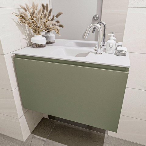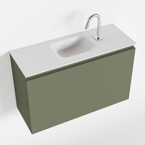 MONDIAZ OLAN Kit lave-mains - 80x30x40cm - 1 trou de robinet - 1 tiroir - army mat - lavabo au centre - Acrylique Blanc